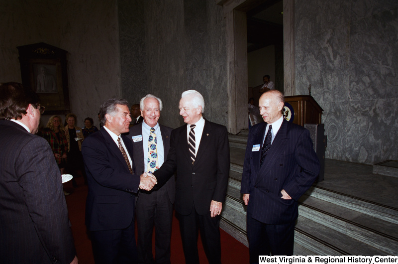 Photograph of Senator Robert C. Byrd, and Congressman Nick Rahall with Gary Croyton(?) and others