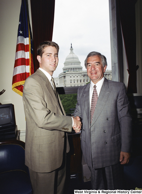 - Photograph of Congressman Nick Joe Rahall and an unidentified visitor in his Washington, D.C. office