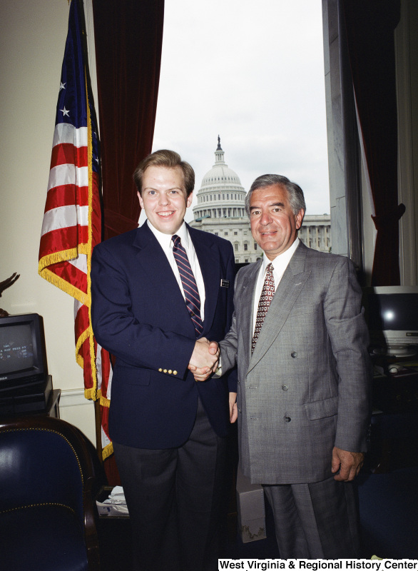 Photograph of Congressman Nick J. Rahall with an unidentified visitor to his Washington, D.C. office