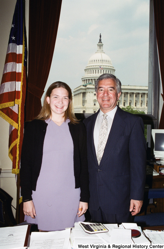 Photograph of Congressman Nick Rahall and an unidentified woman at his Washington office