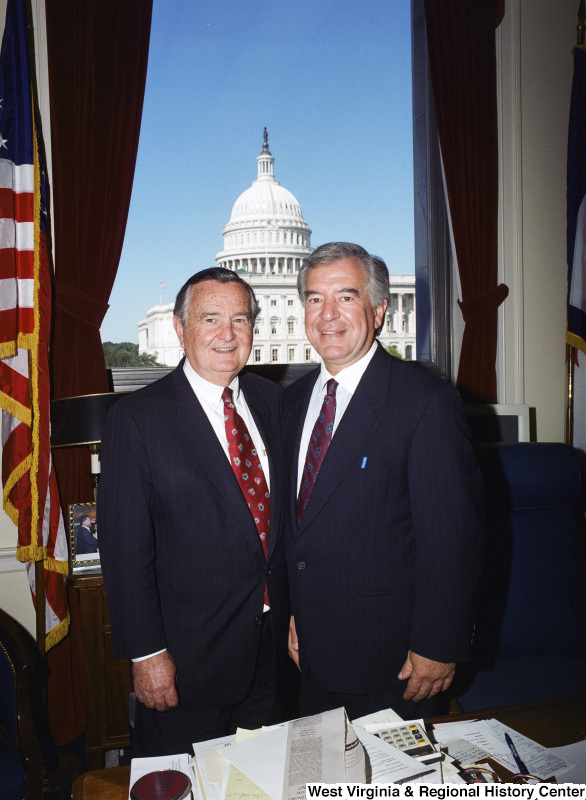 - Photograph of an unidentified man visiting with Congressman Nick Joe Rahall