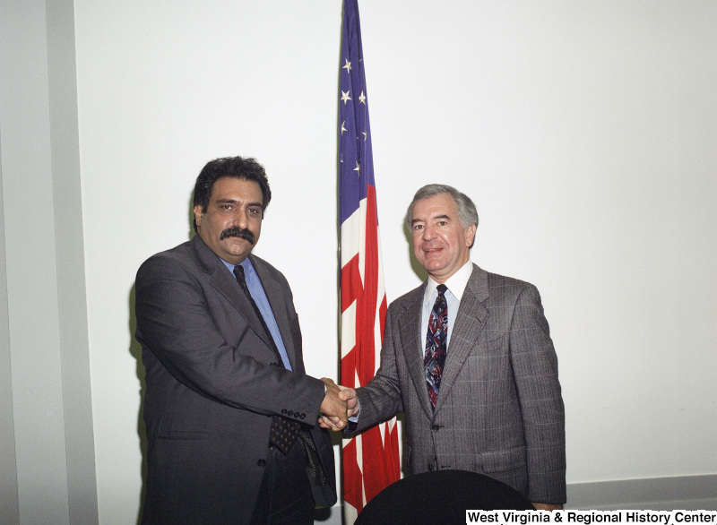 Photograph of Congressman Nick Rahall with Congressman Dana Rohrabacher (CA)