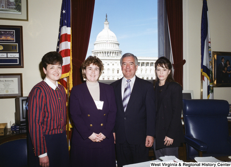 - Photograph of Congressman Nick Rahall with three unidentified women