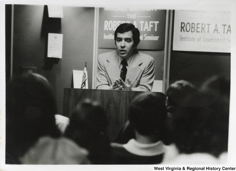 - Congressman Nick Rahall II speaking to students at the Robert A. Taft seminar at Marshall University campus during the summer of 1978.