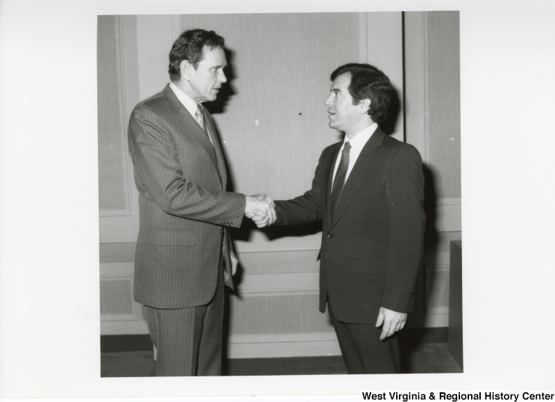 - Photograph of Congressman Rahall shaking hands with Assistant Secretary of State Bill Murphy