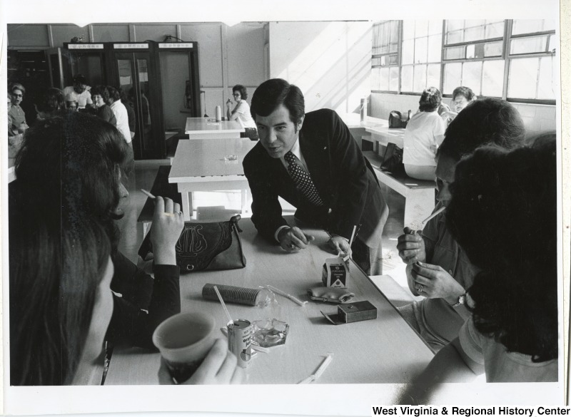 - Congressman Nick Rahall II leaning over a table talking to a group of unidentified women during a campaign trip.
