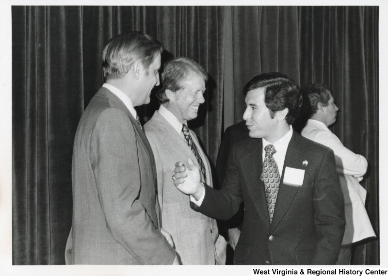 - Congressman Nick Rahall II talking to President Jimmy Carter and an unknown man.