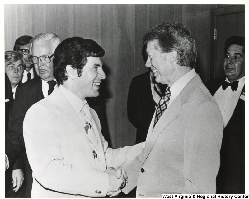 - Congressman Nick Rahall II shaking the hand of President Jimmy Carter.
