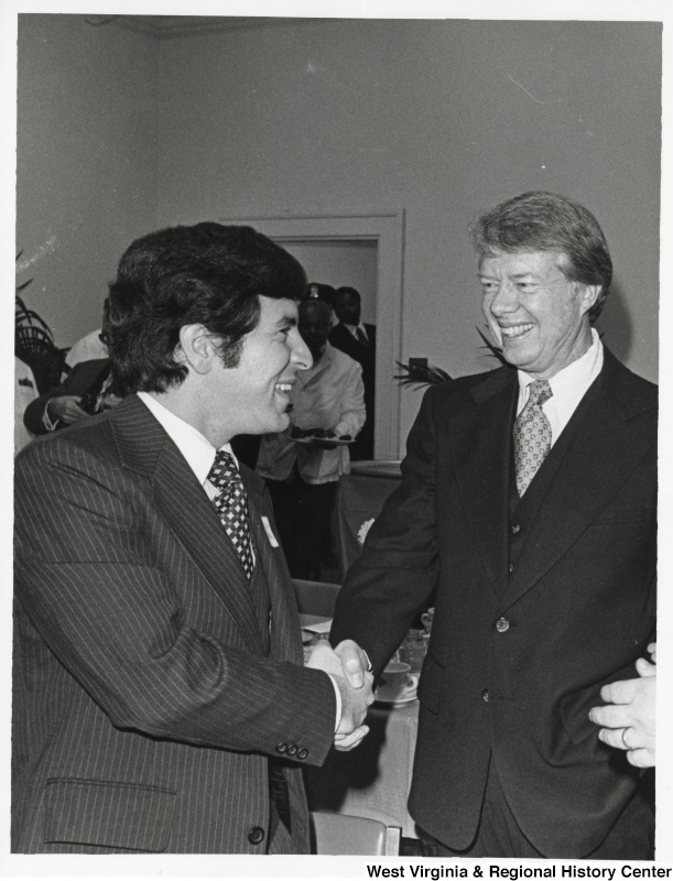 - Congressman Nick Rahall II shaking the hand of President Jimmy Carter.