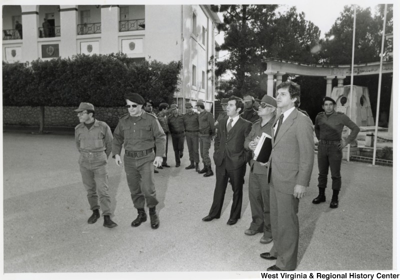 - Congressman Nick Rahall, General Khoury, the commander of the Lebanese Army, and Congressman Toby Moffett reviewing Lebanese Army Academy.