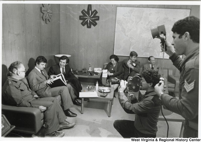 - Photograph of Congressmen Rahall and Moffett and General Khoury being filmed in his office.