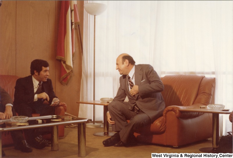 Photograph of Congressman Rahall speaking to the Lebanese Minister of Defense Jospeh Skaff