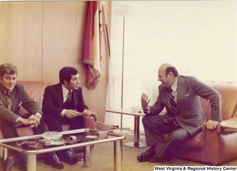 Photograph of Congressman Rahall and McCloskey talking to the Minister of defense and agriculture Joseph Skaff