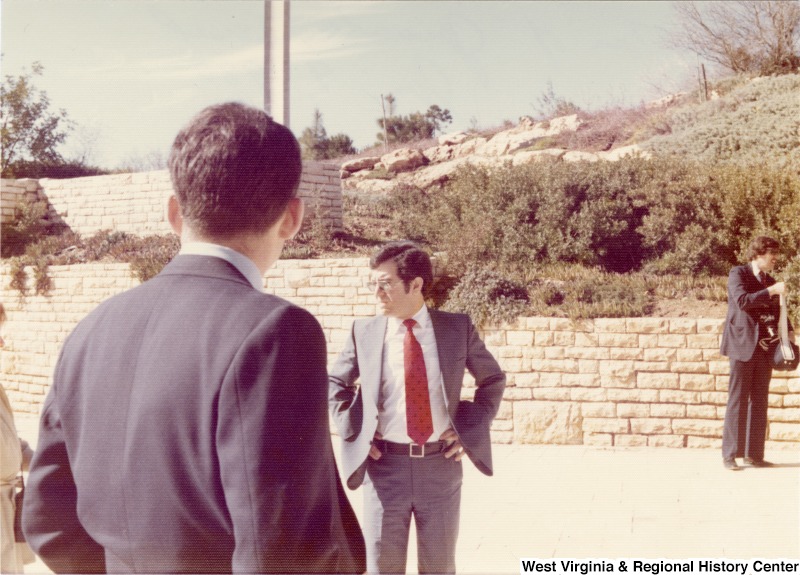 - From left to right: Lieutenant colonel Ron Sufle, USAF escort on the trip; Congressman Nick Rahall (D-WV); and Congressman Bob Carr (D-MI) on a tour of Jerusalem.