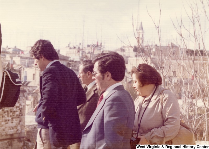 - Congressman Toby Moffett, Congressman Nick Rahall and Congresswoman Mary Rose Oakar overlooking the four divided sections of the city of Jerusalem. The three congressmen are of Lebanese descent.