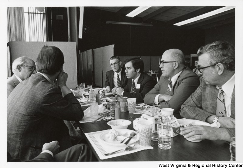 - Congressman Nick Rahall II (third from the left) having a lunch with five unidentified men.