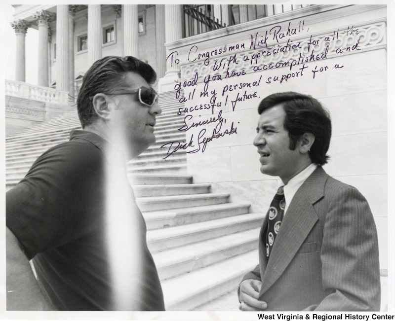 - Congressman Nick Rahall II speaking to Dick Sepkowski. The photograph is signed "To Congressman Nick Rahall. With appreciation for all the good you have accomplished and all my personal support for a successful future. Sincerely, Dick Sephowski."