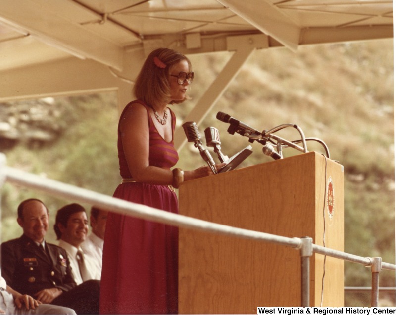Photograph of Sharon Rockefeller speaking at the R. D. Bailey Dam dedication
