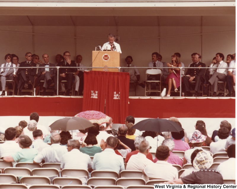 Photograph of Senator Byrd speaking at the R. D. Bailey Dam dedication