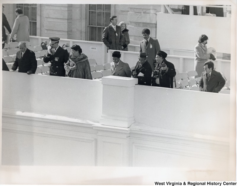 - Congressman Nick Rahall II (first on the right) looking over a balcony. There are six unidentified people looking over the balcony with him.