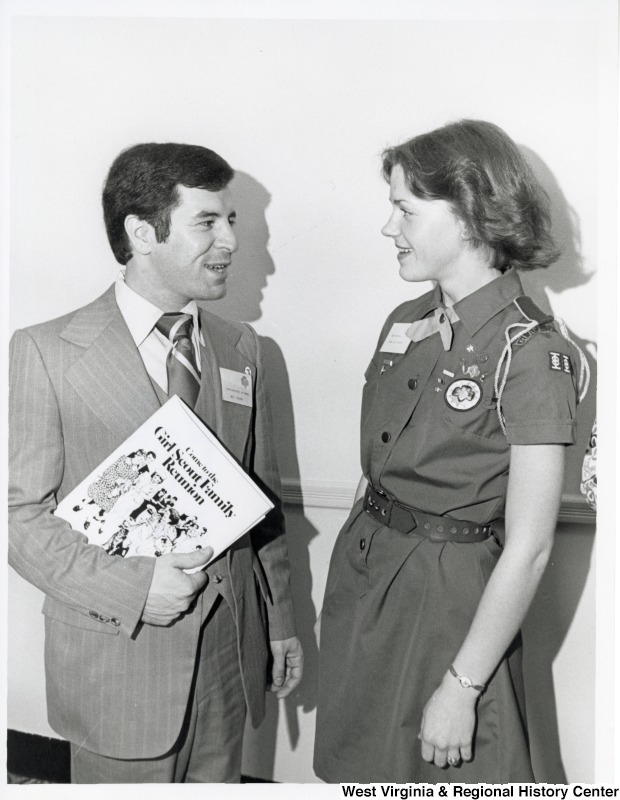 - Congressman Nick Rahall II speaking with a unidentified Girl Scout at the Girl Scout Family Reunion.
