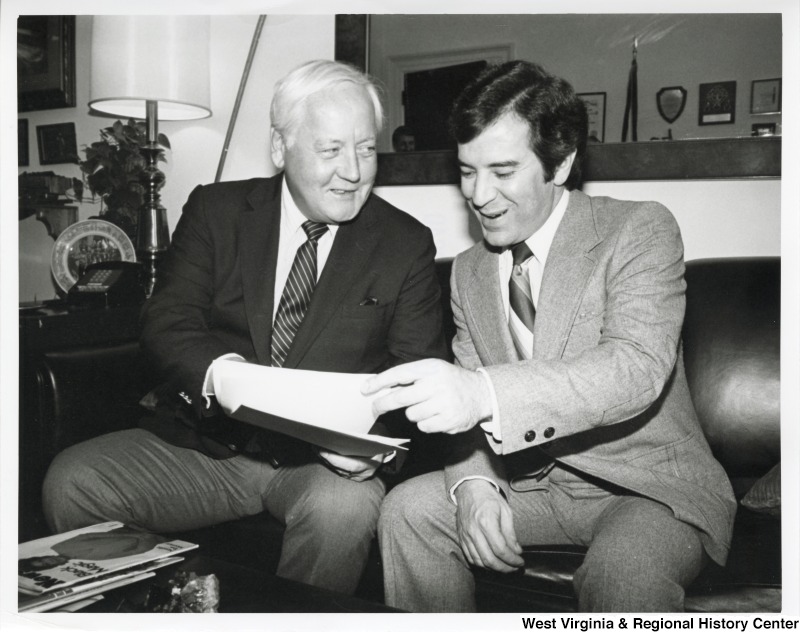 - Congressman Nick Rahall going over documents with Carl Baggy, President of the National Coal Association.