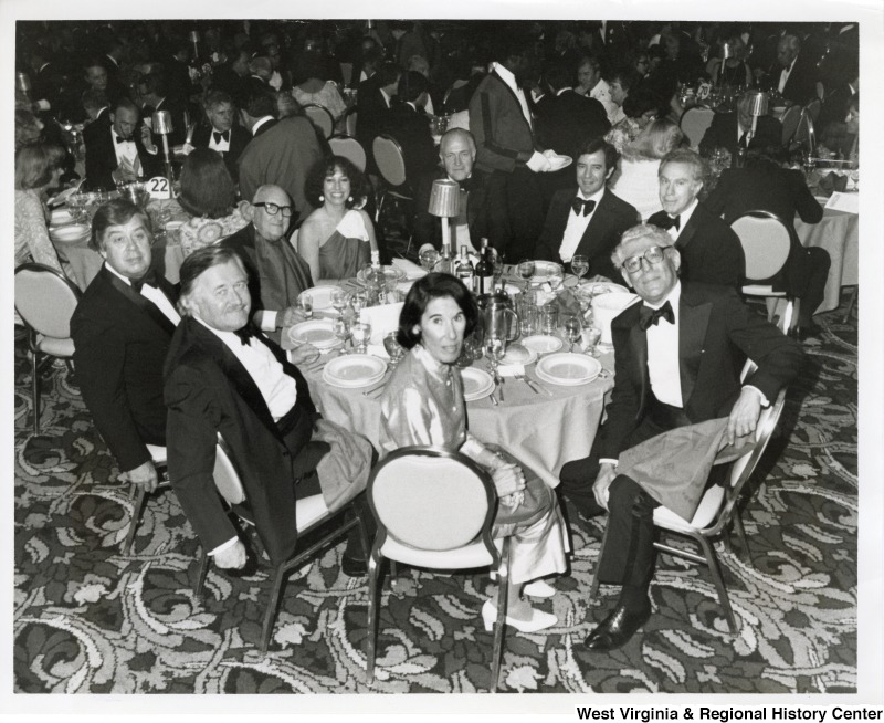 - Congressman Nick Rahall II seated at a table with a group of unidentified people.
