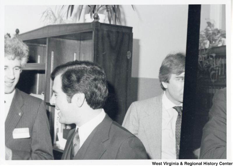 - Congressman Nick Rahall speaking to a unidentified man. There is another unidentified man behind him.