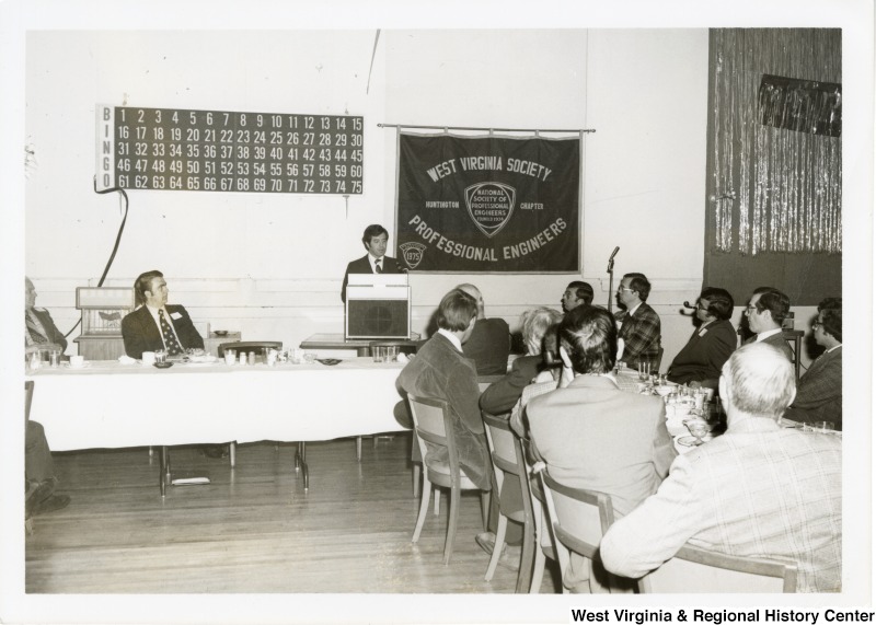- Photograph of Congressman Rahall speaking at a West Virginia Society of Professional Engineers function