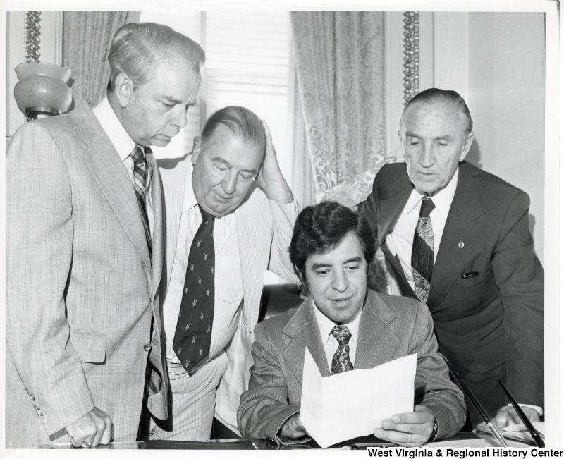 - From left to right: Senator Robert C. Byrd, Senator Jennings Randolph, Congressman Nick Rahall II (seated) and Senate Majority Leader Mike Mansfield.