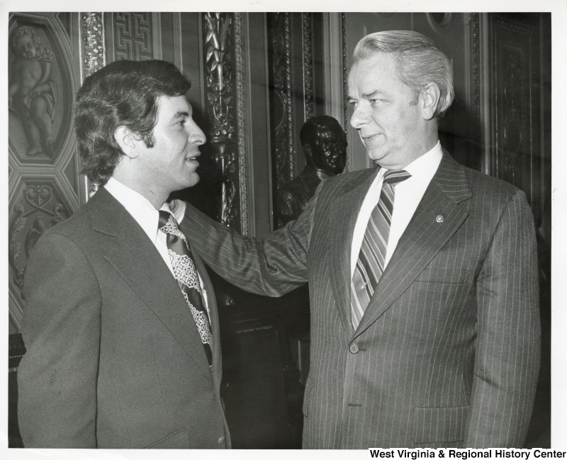- Congressman Nick Rahall II speaking to Senator Robert C. Byrd. Byrd has his hand on Rahall's shoulder. They are standing in the Senate Chambers right off the Senate floor.
