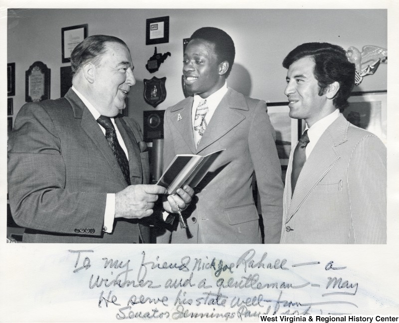 - Senator Jennings Randolph, an unidentified youth and Congressman Nick Rahall II in Randolph's office in Washington, D.C.The photograph is signed 'To my friend Nick Joe Rahall - a winner and a gentleman - may he serve his state well - from Senator Jennings Randolph.'