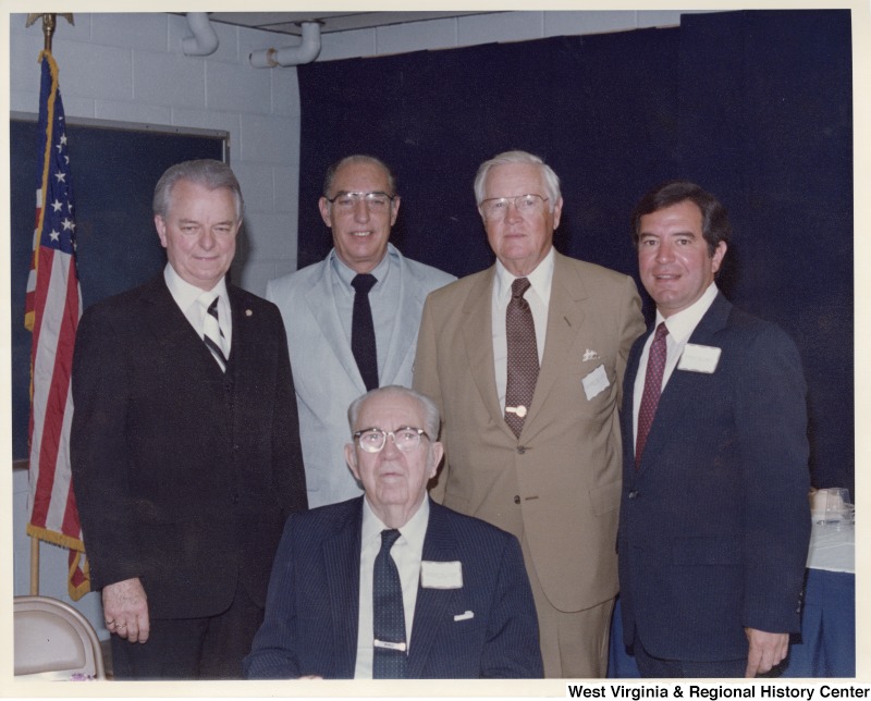 - Senator Robert C. Byrd (first on the left) and Congressman Nick Rahall II (first on right) with three unidentified men.