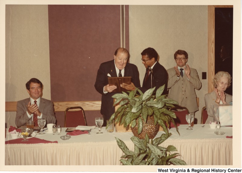 - From left to right: Congressman Nick Rahall II; Senator Jennings Randolph; Huntington Mayor Joe Williams; an unidentified man; and Huntington Council Dallas Thacker. Senator Jennings Randolph is receiving an award from Huntington Mayor Joe Williams. They are at a Holiday Inn in Huntington, W.V.
