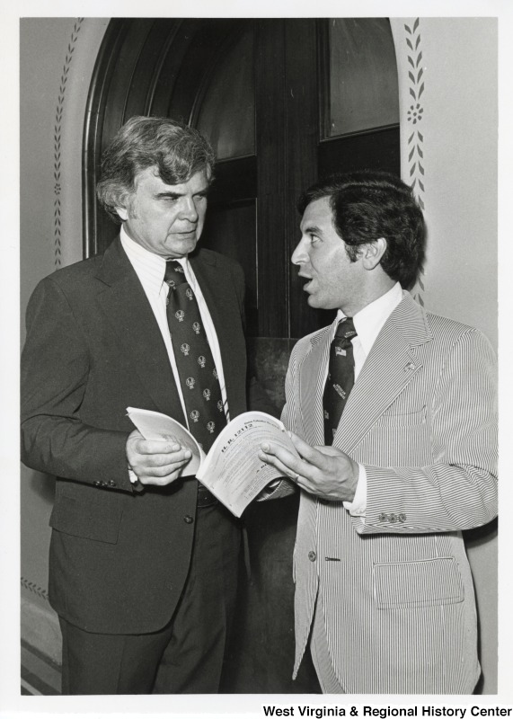 - Congressman Nick Rahall II speaking to an unidentified man about the bill, H.R. 12112.