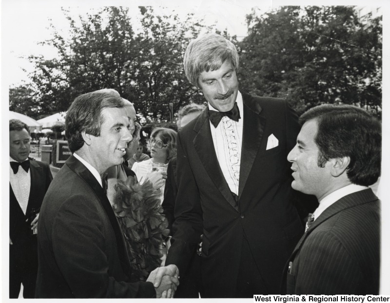 - Congressman Tony Coehlo (D-CA) shaking the hand of Congressman Tom McMillen (D-MD), former Pro-Basketball star, at the Democratic Congressional Dinner. Congressman Nick Rahall II (D-WV) is standing beside McMillen. Rahall worked in the Democratic cloak room with McMillen.