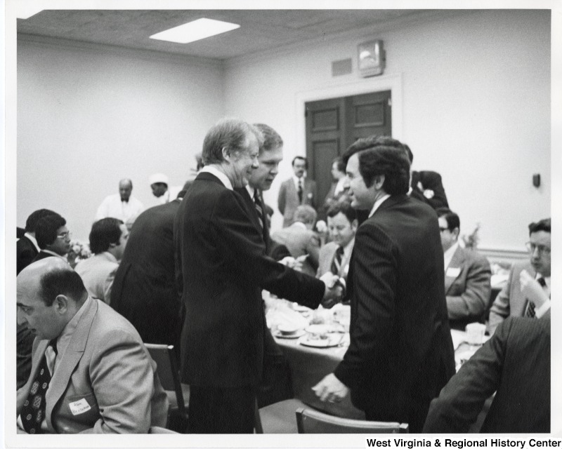 - From left to right: Congressman Adam Benjamin (D-IN) seated, President Jimmy Carter, Congressman Norman Dicks (D-WA), and Congressman Nick Rahall II (D-WV) shaking President Carters hand. This was at a new member function.