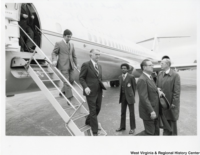 - From left to right: Congressman Nick Rahall (D-WV), Congressman Bob Mollohan (D-WV), Congressman Jamie Whitten (D-MS) landing at Yeager Airport for the funeral of Congressman John Slack.