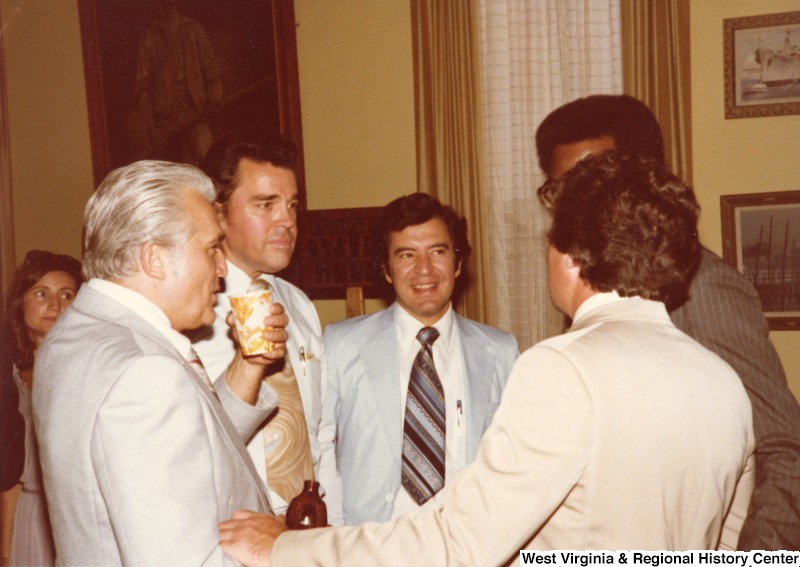 - From left to right: Congressman Joseph Gaydos (D-PA); Congressman Doug Applegate (D-OH); Congressman Nick Rahall II (D-WV); Bob McGlotten, AFL-CIO; and Congressman Michael "Ozzie" Myers (D-PA) at a Pennsylvanian Delegation Party in Washington, D.C..