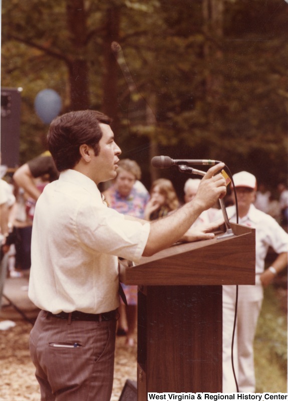 - Congressman Nick Rahall II speaking at a Democratic picnic for Governor Jay Rockefeller.