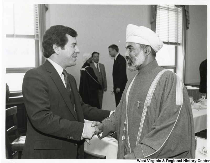 - Congressman Nick Rahall II shaking the hand of His Majesty Qaboos bin Said, Sultan of Oman during a coffee meeting.