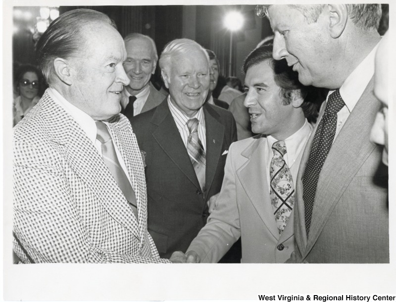 - Photograph of Bob Hope, Congressman Staggers, and Congressman Rahall