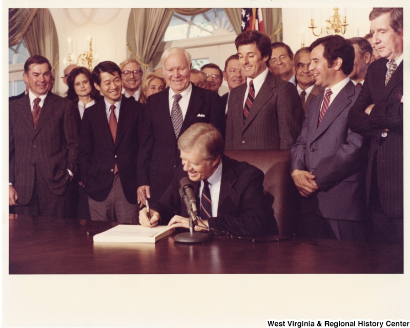 - From left to right: Congressman Bob Matsui (D-CA); Congressman Harley Staggers (D-WV); Congressman Jim Florio (D-NJ); Congressman Nick Rahall (D-WV); and former Congressman Fred Rooney (D-PA) who was with the American Association of Railroads. The congressmen are watching President Jimmy Carter sign the railroad deregulation bill (Staggers Rail Act of 1980).