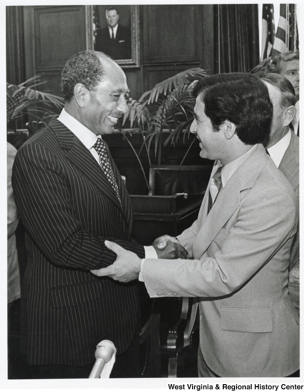 - Congressman Nick Rahall II shaking the hand of Egyptian President Anwar Sadat.
