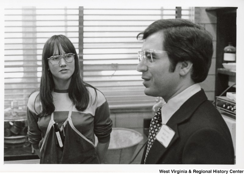 - Congressman Nick Rahall II speaking with an unidentified woman.