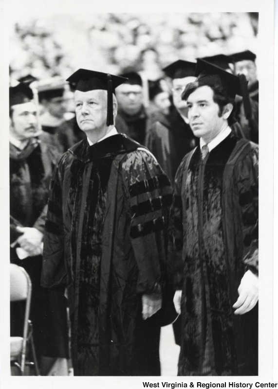 - Senator Robert C. Byrd and Congressman Nick Rahall II participating in a commencement ceremony.