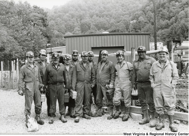- Photograph of Congressman Rahall at Old Ben Coal Mine with a group of unidentified coal miners