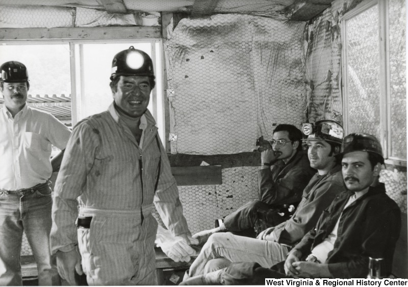 - Congressman Nick Rahall dressed in coal miner uniform at Old Ben Coal Mine with four unidentified coal miners