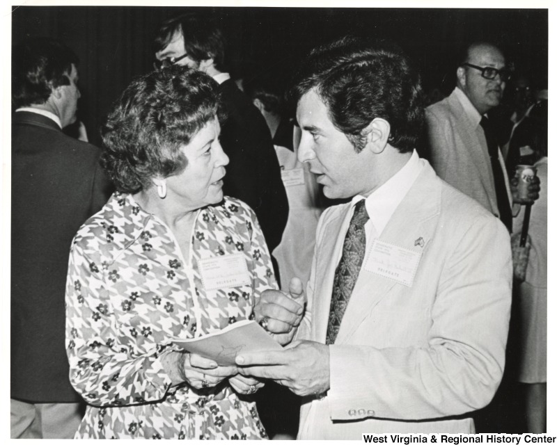 - Congressman Nick Rahall II speaking to an unidentified woman.