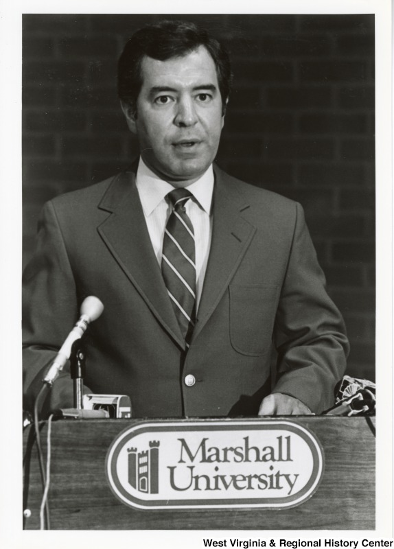 - Congressman Nick Rahall speaking during an official visit to Marshall University.